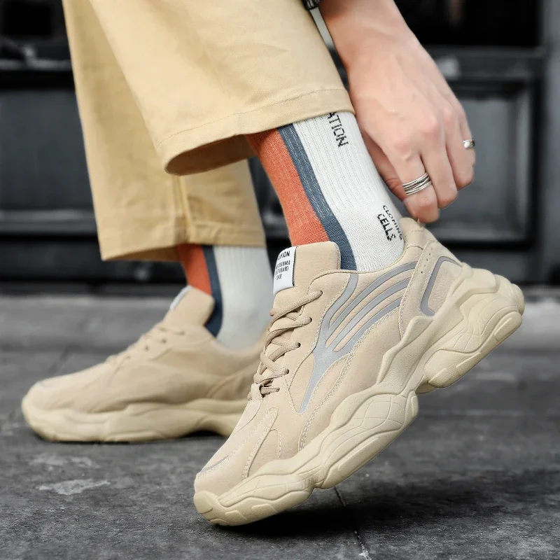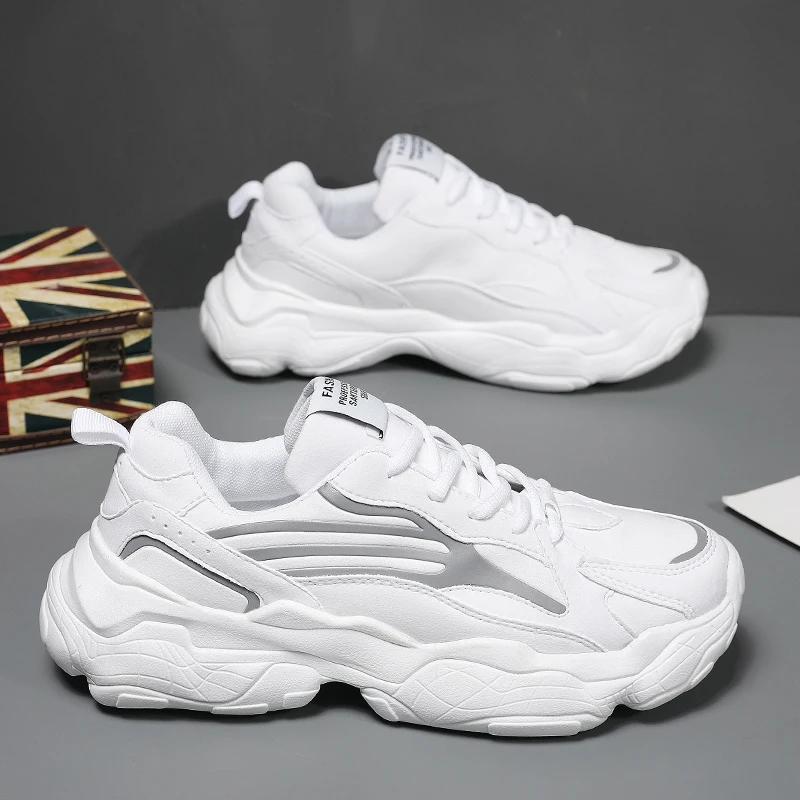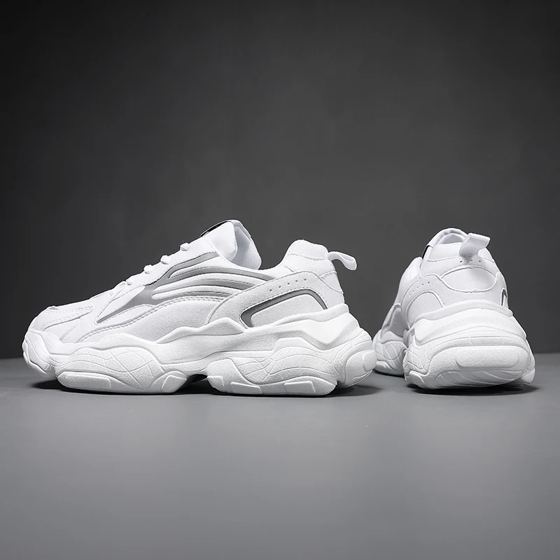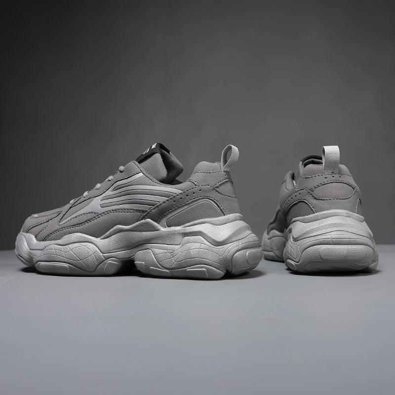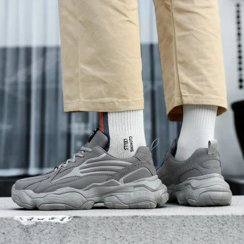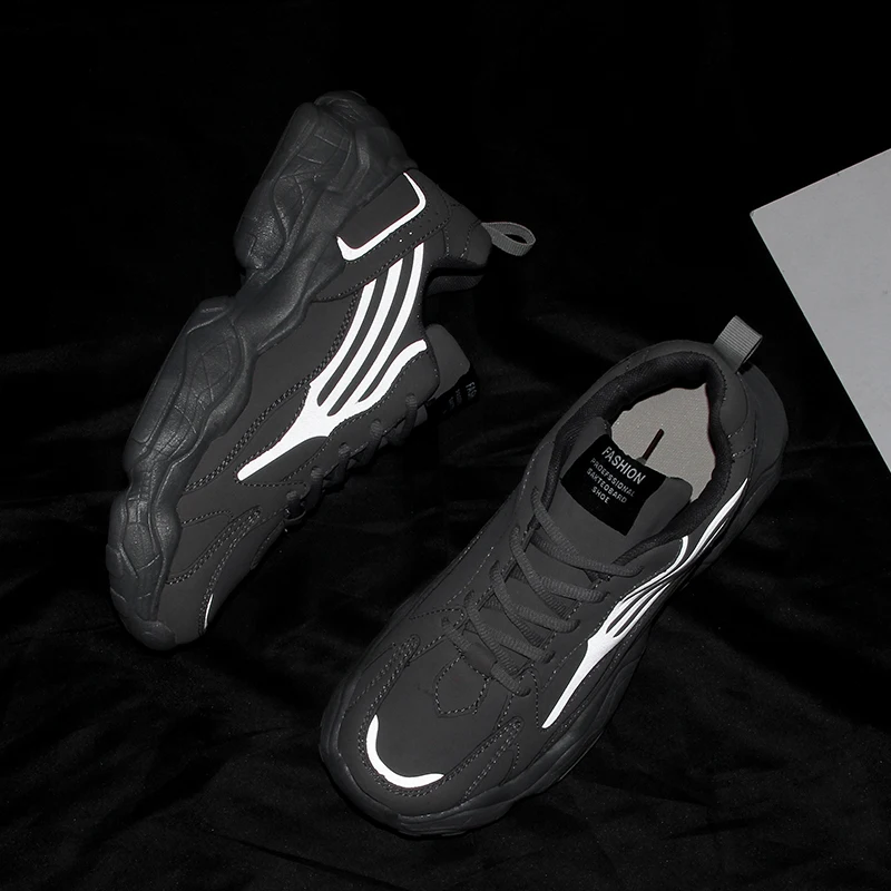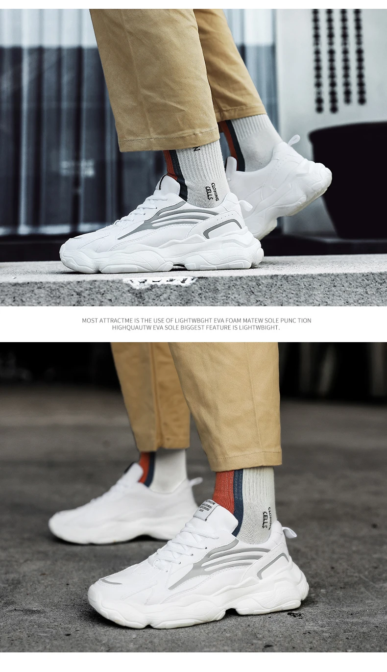 Men's Sports Shoes: Thick-soled, Height-increasing, Lace-up, Large-sized, All-season Solid Color Luminous Trendy Running Shoes