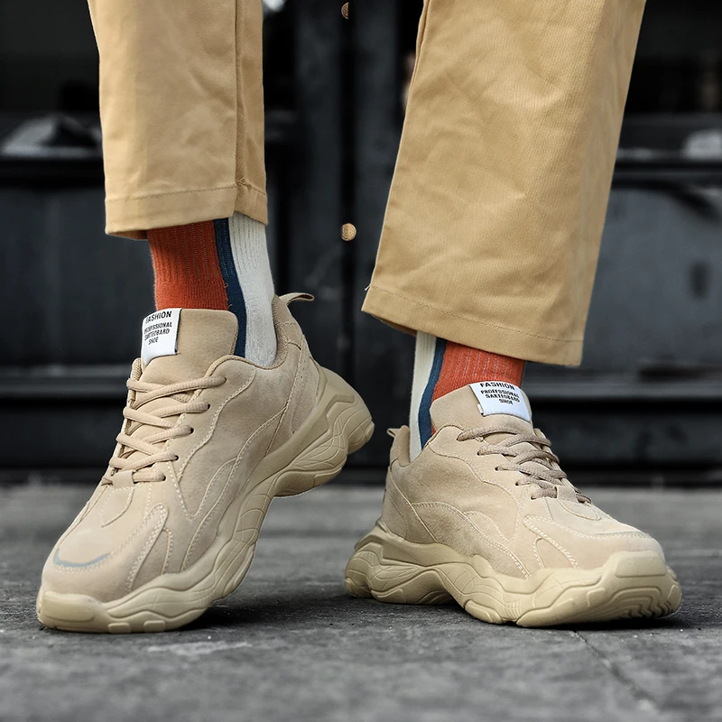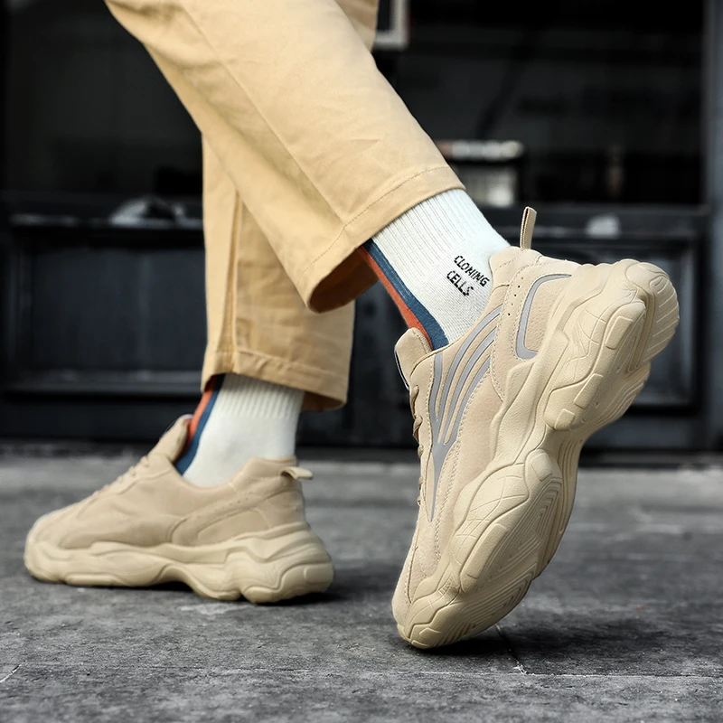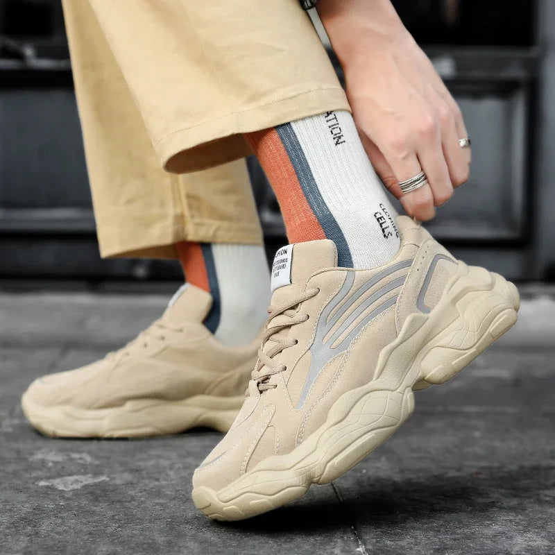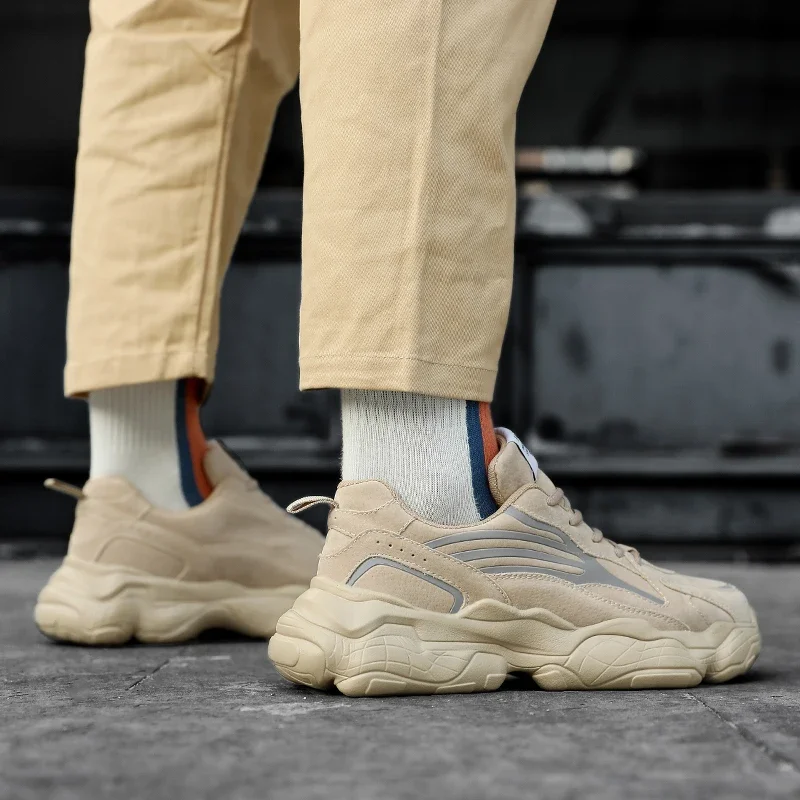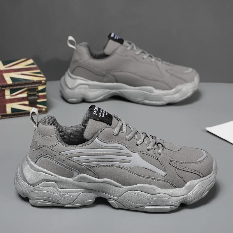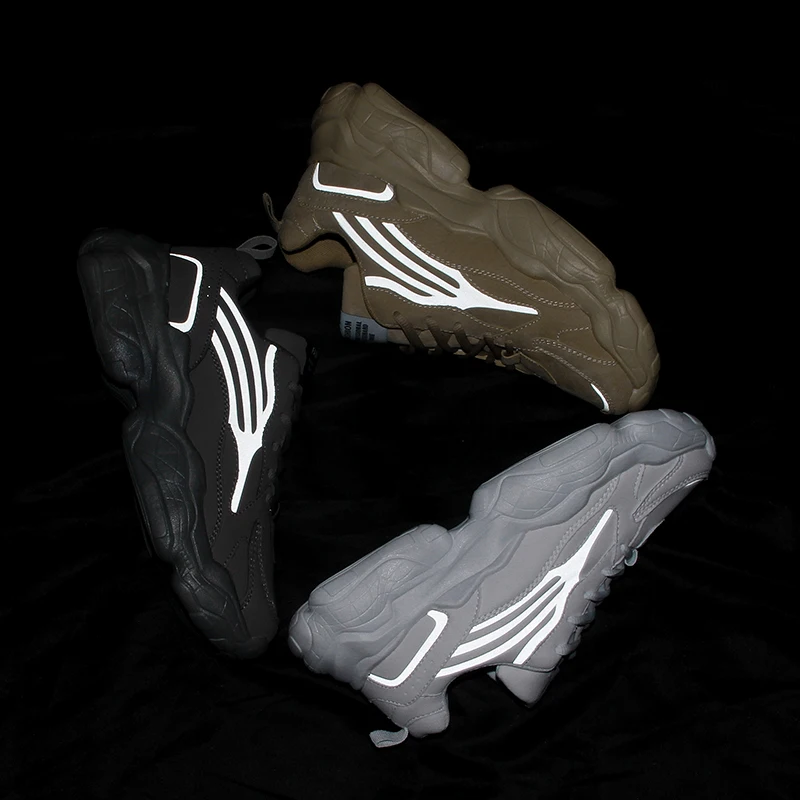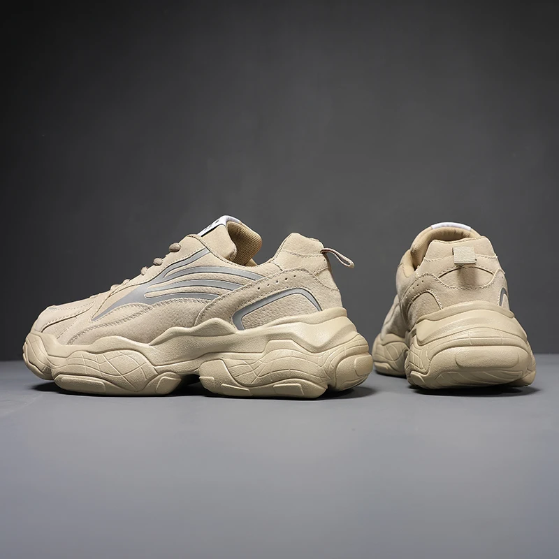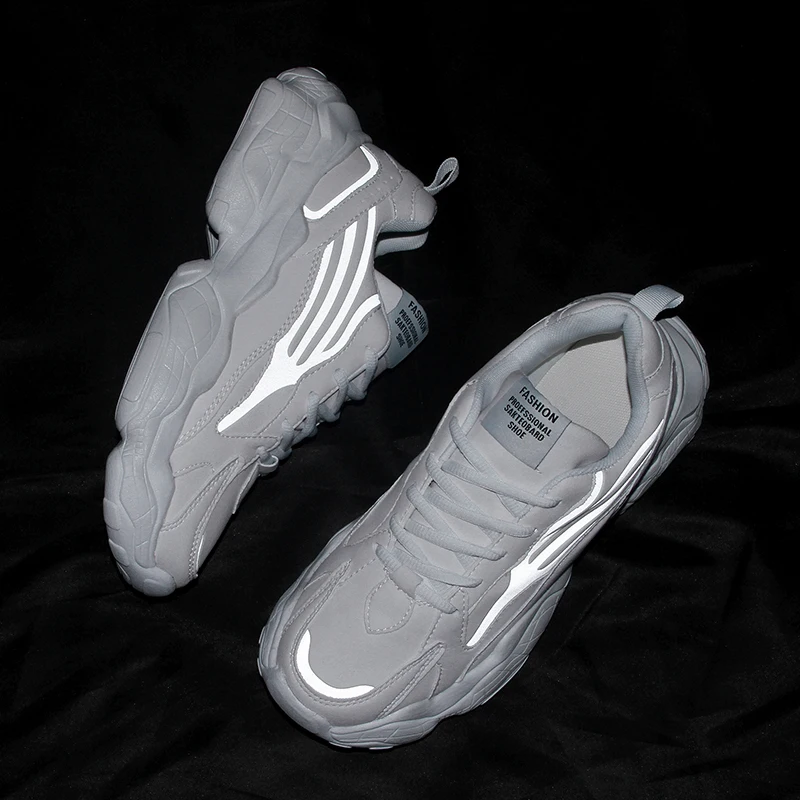 Men's Sports Shoes: Thick-soled, Height-increasing, Lace-up, Large-sized, All-season Solid Color Luminous Trendy Running Shoes